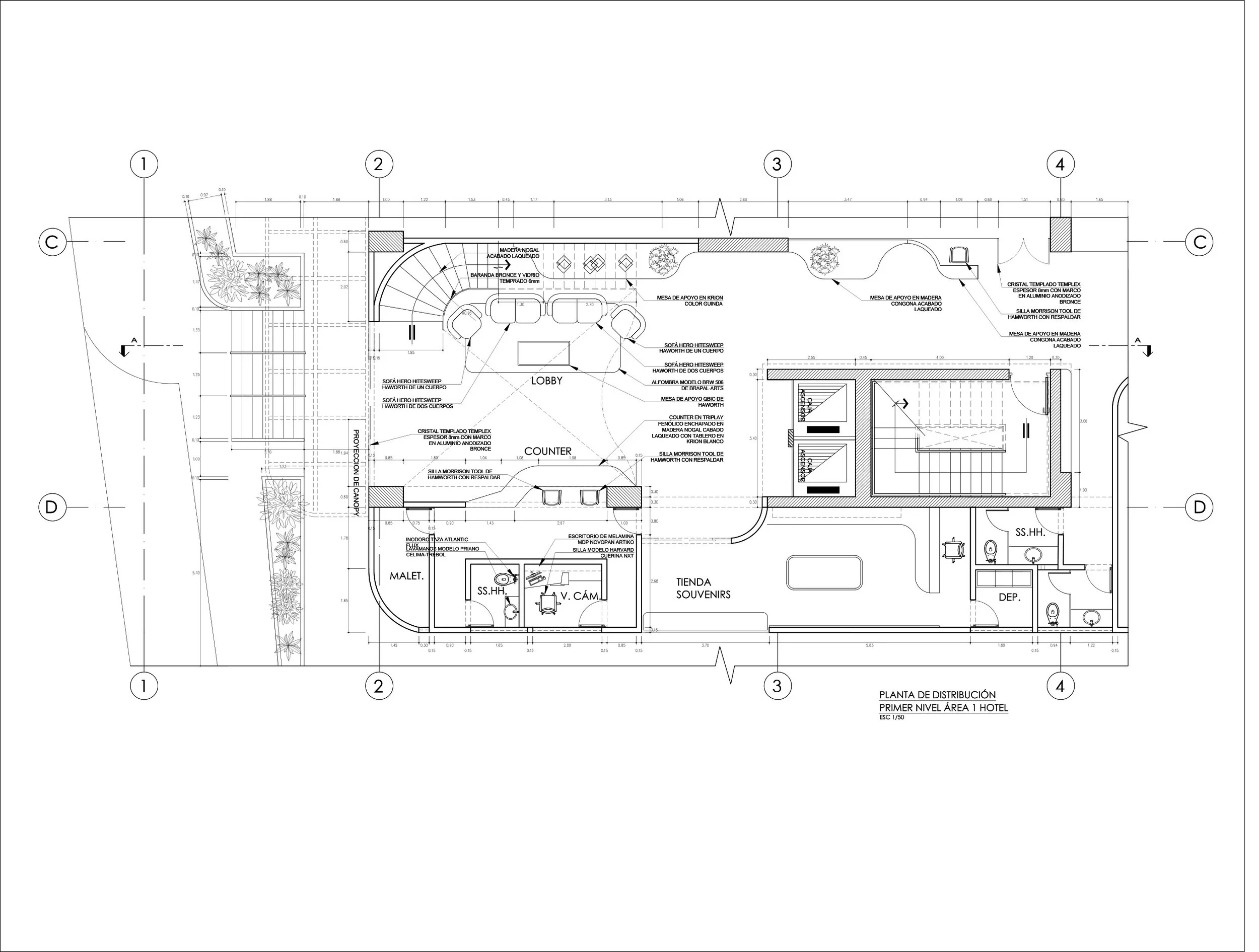 Drafting and vector layouts are developed in Vectorworks, AutoCAD or Revit. Examples include residential, furniture, and scenic design work.